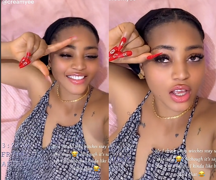 Captioning the video, she wrote; “Me I think only witches stay up till this time. Although it's safe to call me a witch I kinda like being called that.”