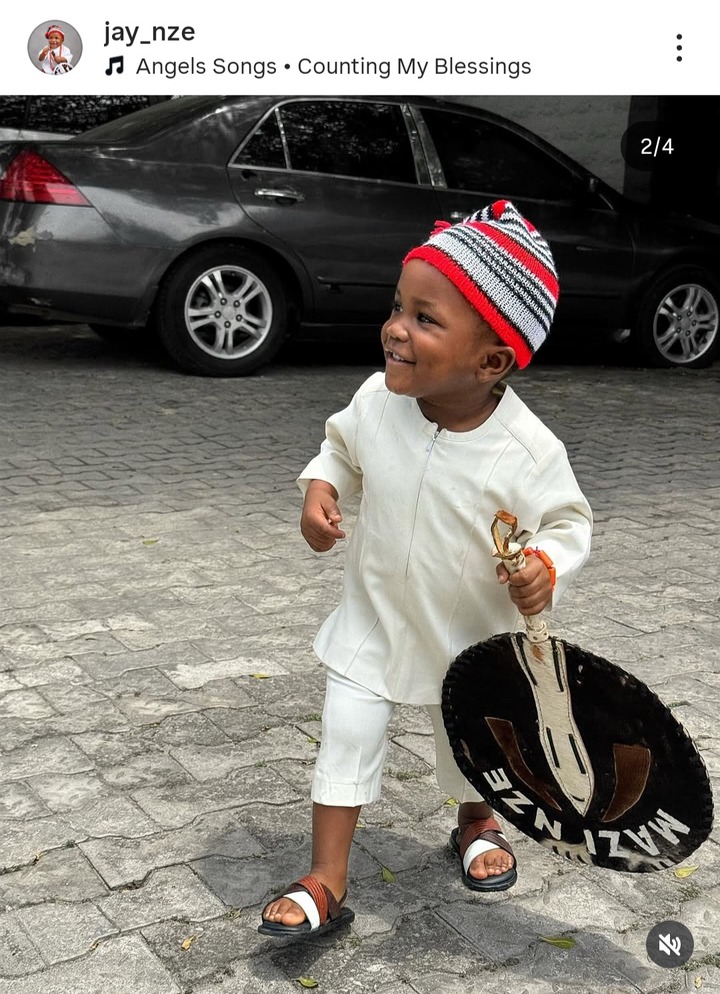 In the post, young Jayden is seen smiling brightly while dressed in traditional Igbo attire. His cheerful expressions and confident pose delighted followers, with fans and celebrities alike flooding the comment section with kind words, compliments, and warm wishes.