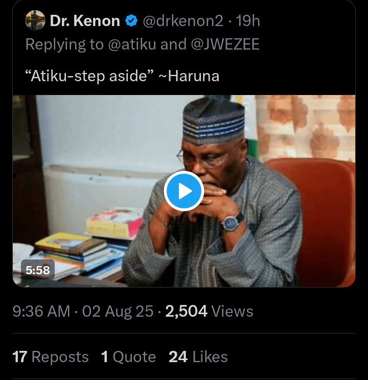 Demola Olanrewaju, the Special Adviser on Digital Media Strategy to the former Vice President, Atiku Abubakar has taken to his official X account on Saturday, August 2, 2025 to react after listening to the song that a musician composed for Atiku Abubakar.