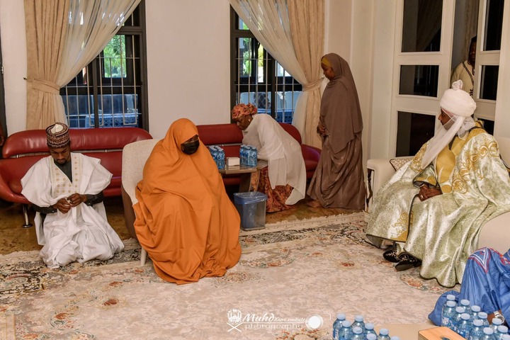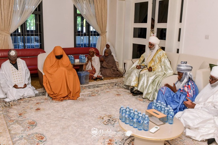 Wife of Late President, Aisha Buhari, Alongside Son and Daughter, Receives Emir Sanusi [Photos]