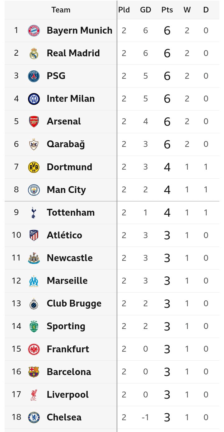Champions League Table And Match Review After Wednesday's Fixtures