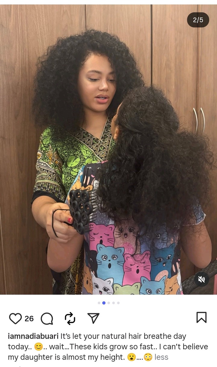 In the heartwarming photos, Nadia is seen smiling while gently combing and styling her daughter’s hair. Alongside the post, she expressed surprise at how quickly her daughter is growing and mentioned that she is now almost as tall as her. Her message reflected deep affection and a mother’s pride in watching her child mature before her eyes.