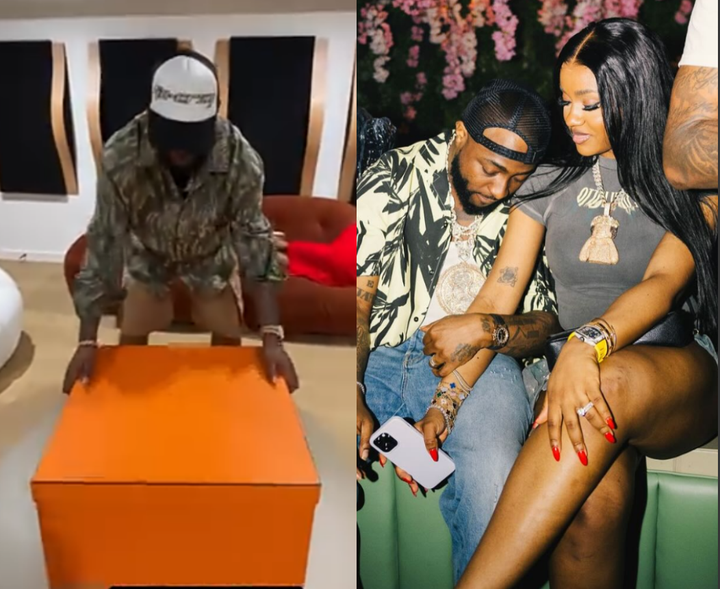 The video captured Chioma casually lying on the couch, while Davido unboxed the gift, to his surprise, it was a designer bag, which left him so excited.
