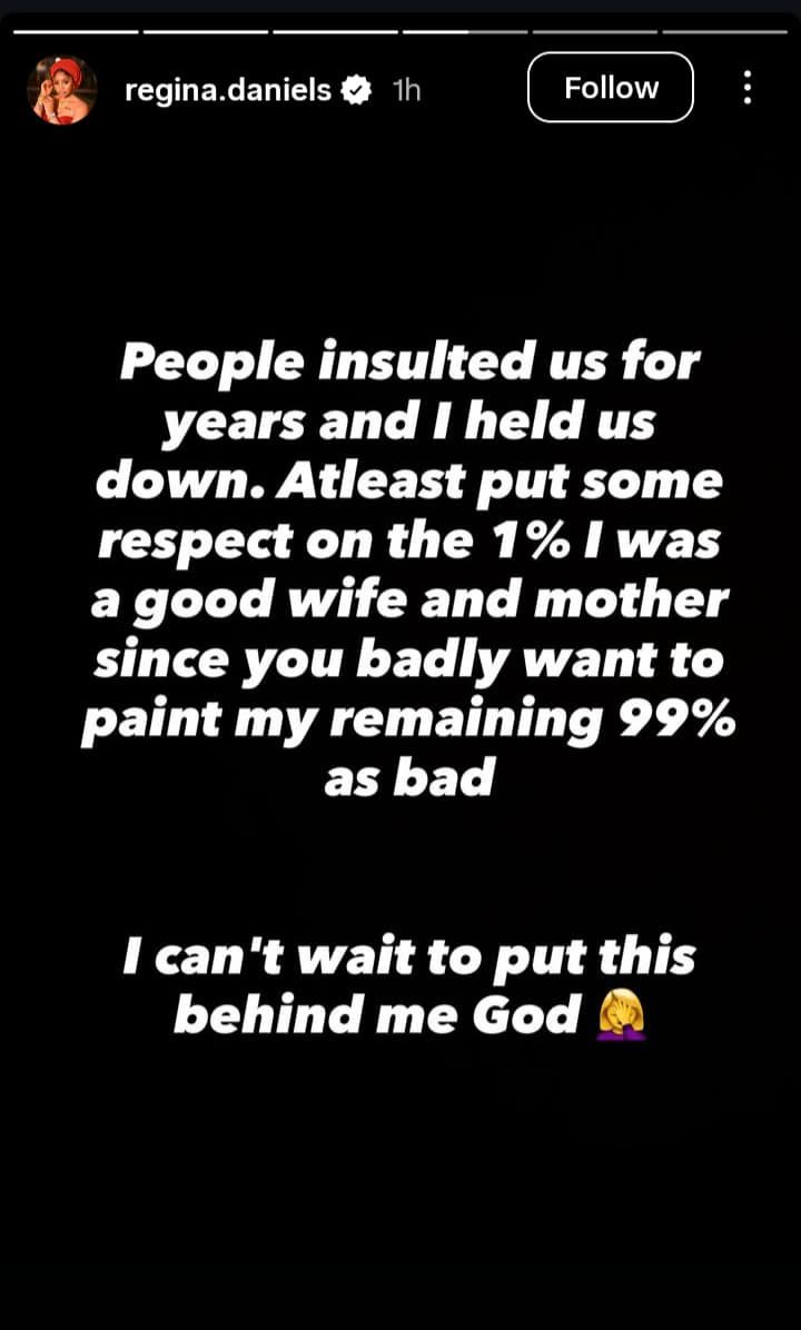 Nollywood actress Regina Daniels rants again as she accuses her husband, Senator Ned Nwoko, of allegedly attempting to tarnish her image both publicly and privately.