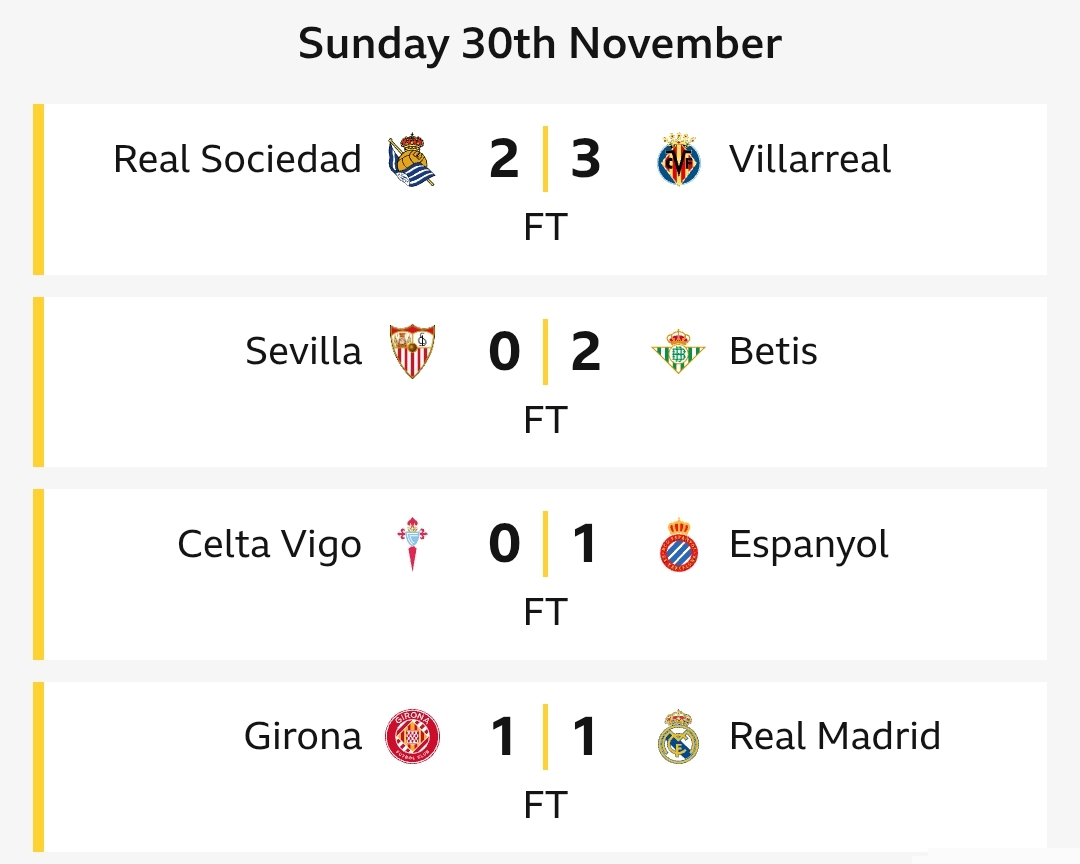 Girona sit third from bottom with 12 points, but they frustrated Real from start to finish. Azzedine Ounahi handed the hosts the lead just before half-time, firing a first-time strike into the top corner after a swift counter-attack. Real’s sluggish first half did not help, with Xabi Alonso’s side producing only one shot on target before the break.