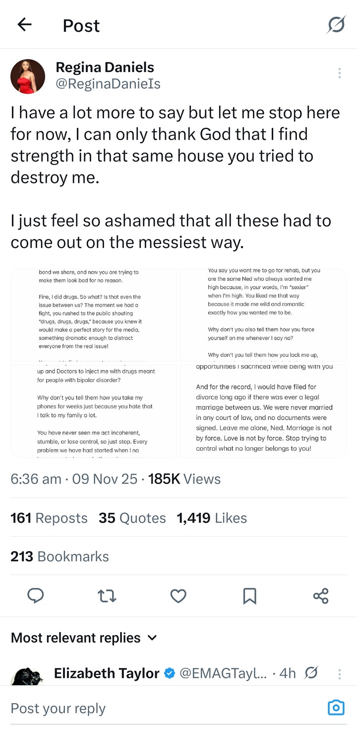 Iher post on X, stated that no amount of monetary investment could equate to the years, energy, and career opportunities she relinquished. This response comes days after Nwoko alleged he transferred ₦125 million to Daniels' family in the past two years alone, framing it as goodwill amid claims of harassment by her brother, Sammy West.