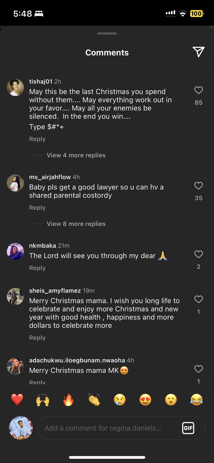 The post quickly generated reactions from fans and followers. Many expressed happiness at seeing Regina bonding with her sons, praising her for creating such cherished memories despite recent controversies. Others admired the festive family shoot, highlighting the actress’s glowing look and the adorable connection she shares with her boys.