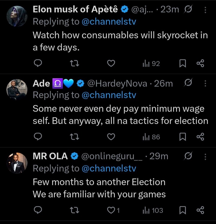 In addition, a new exit benefit scheme has been introduced for retirees under the Contributory Pension Scheme, effective from January 1, 2026. Retiring workers will now receive 100 percent of their full emoluments as a lump sum alongside their pension. The government also confirmed an Employee Compensation Scheme for workers affected by workplace injuries or death. Following the announcement, the development generated widespread reactions online, with users expressing mixed opinions—some praising the move as supportive of workers, while others questioned its implementation and long-term impact on the economy.